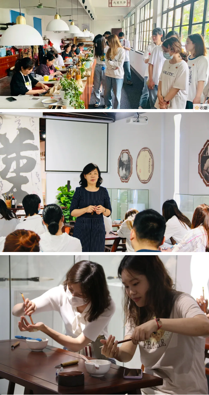 由20位学生党员组成的国教学院“劳育流动课堂”走进中国湖笔博物馆,与省级非物质文化遗产传承人王晓华心连心,不仅了解了善琏湖笔的文化和历史,而且亲自体验了湖笔的制作过程,品味了湖笔背后专注笃定、追求卓越、止于至善的匠心匠魂。
