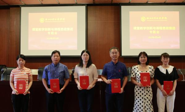 会议还举行了2020/2021学年优秀教学奖、卓越教学•扬戈科技奖颁奖仪式,为信息学院、国教学院、经管学院颁发“课程思政示范二级学院”建设立项证书,为测市学院、建工学院颁发“课堂教学创新示范二级学院”建设立项证书,为丁敏、马申等24位教师颁发了“水文化+”课程思政教学研究中心兼职研究员聘书。