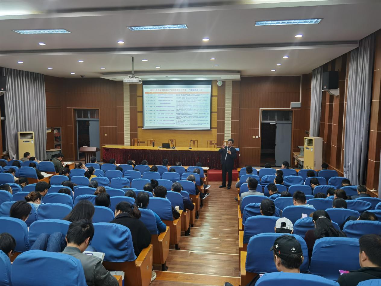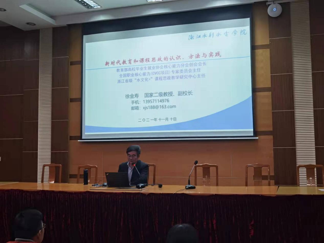 徐金寿从新时代教育新理念、新时代教育新要求、课程思政的认识、方法与实践等方面系统地作了理论分析和经验分享。重点介绍了我校在长期的“课程思政”教学实践过程中不断总结提炼的浙水院十点共识”“课程思政十法”。经过全校师生积极努力,在理论研究、师资队伍建设、课程思政示范课程培育等方面取得了丰硕的阶段性成果课程思政与思政课程同向同行、协同育人的氛围正在形成,立德树人成效已经凸显。