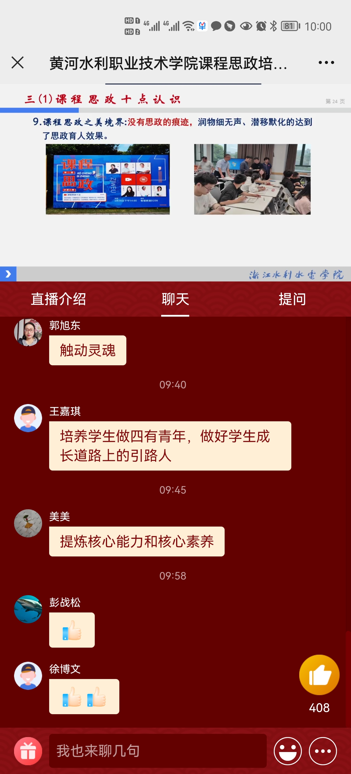 讲座历时二个半小时,黄河水职院的老师反响热烈,纷纷表示受益多多。此次讲座共有1570多人次参与线上培训和互动。