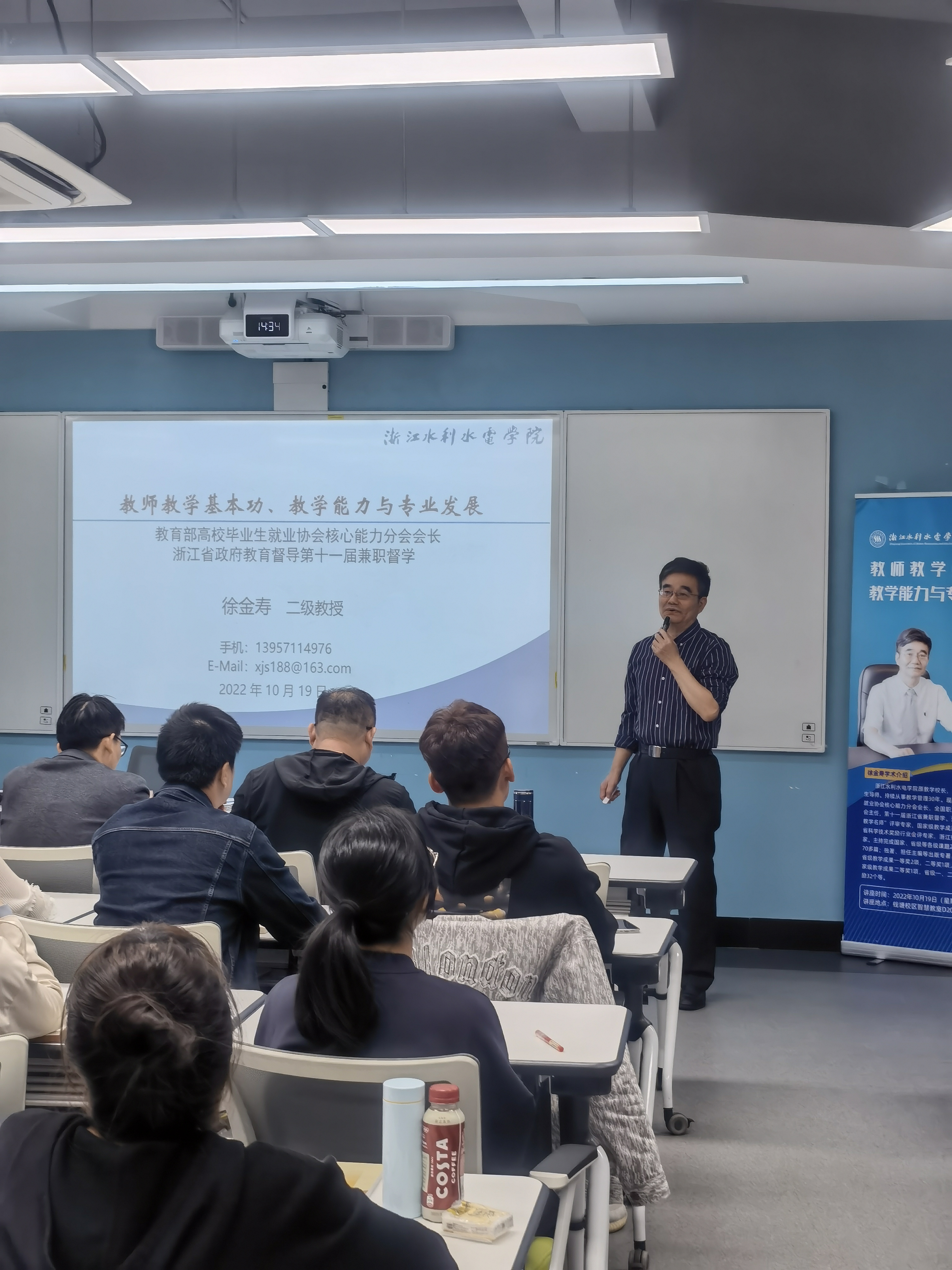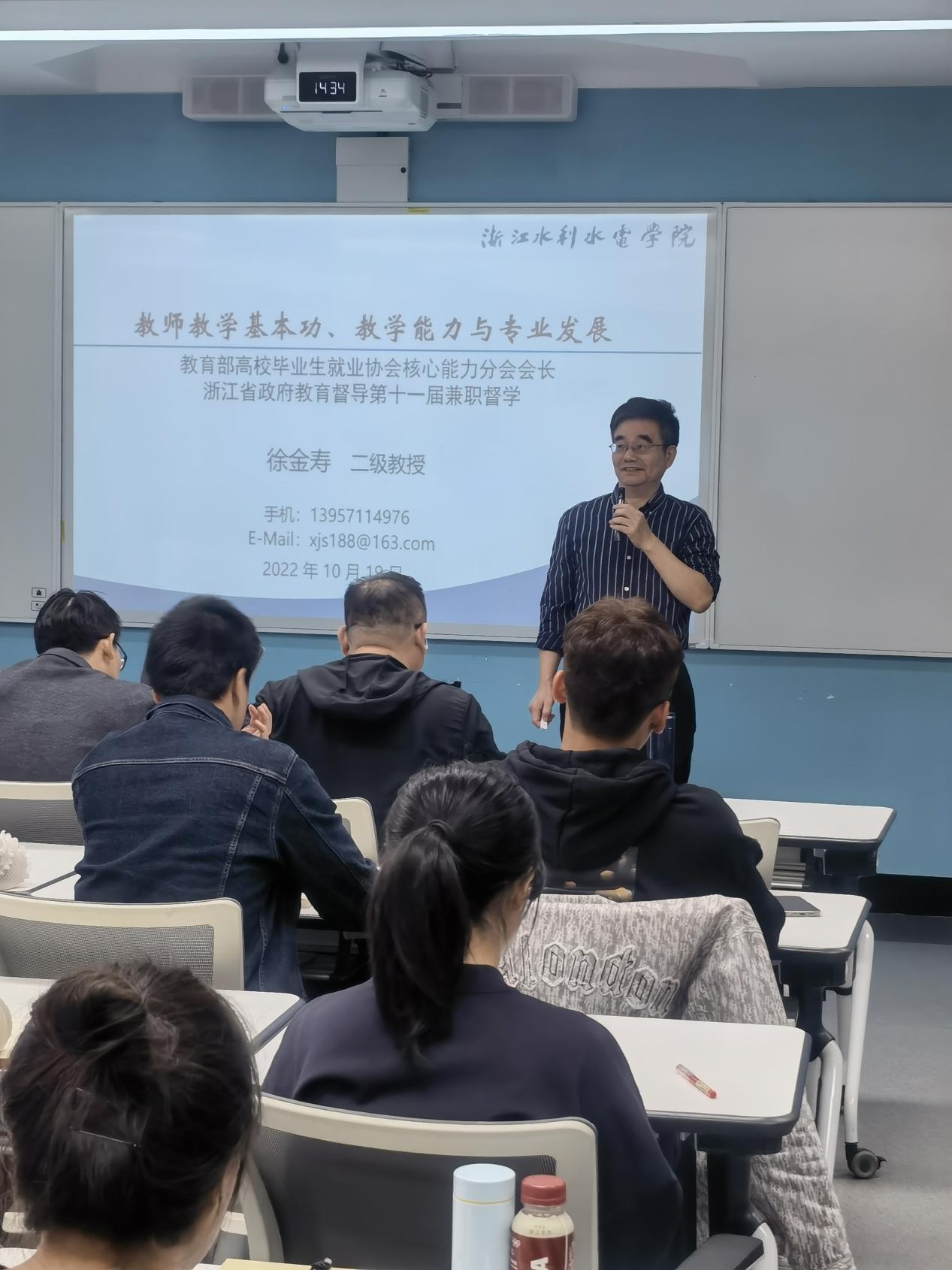 10月20日下午,浙江水利水电学院原教学副校长、“水文化+“课程思政研究中心主任徐金寿教授,应学校教师教学发展中心邀请来到新进教师中间,为2022年新进教师作《教师教学基本功、教学能力与专业发展》专题讲座,帮助新进教师尽快熟悉教学岗位,助力新进教师发展成才。